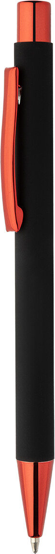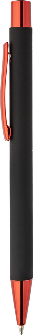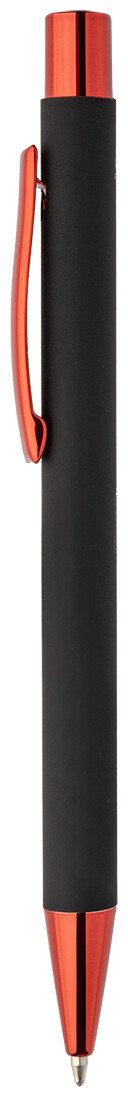 Kuličkové pero z recyklovaného hliníku s černým pogumovaným tělem a barevnými lesklými kovovými částmi. Se speciálním povrchem pro zrcadlové gravírování, které ladí s kovovými částmi. S modrou náplní.