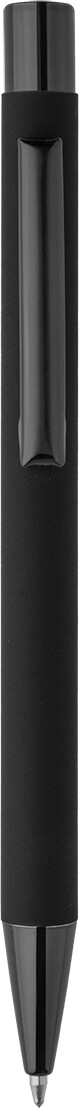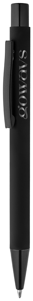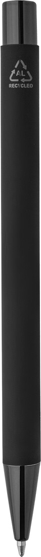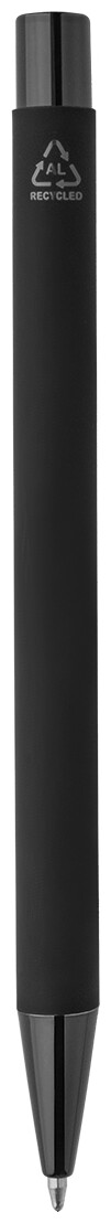 Kuličkové pero z recyklovaného hliníku s černým pogumovaným tělem a barevnými lesklými kovovými částmi. Se speciálním povrchem pro zrcadlové gravírování, které ladí s kovovými částmi. S modrou náplní.