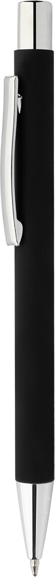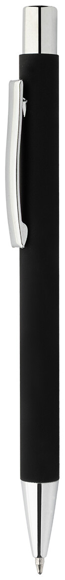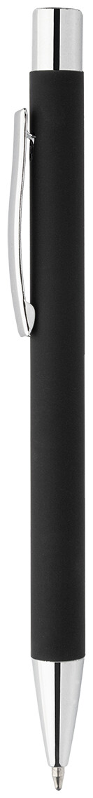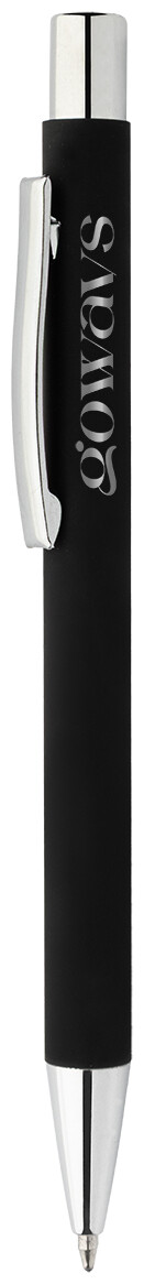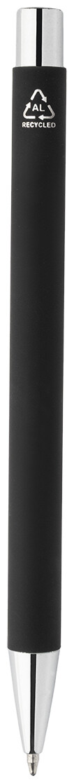 Kuličkové pero z recyklovaného hliníku s černým pogumovaným tělem a barevnými lesklými kovovými částmi. Se speciálním povrchem pro zrcadlové gravírování, které ladí s kovovými částmi. S modrou náplní.