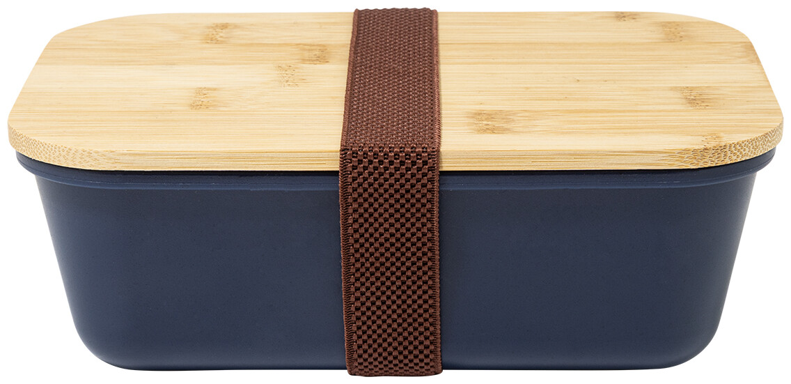 Box na jídlo z PP plastu s bambusovým víkem a elastickým páskem. 1000 ml.