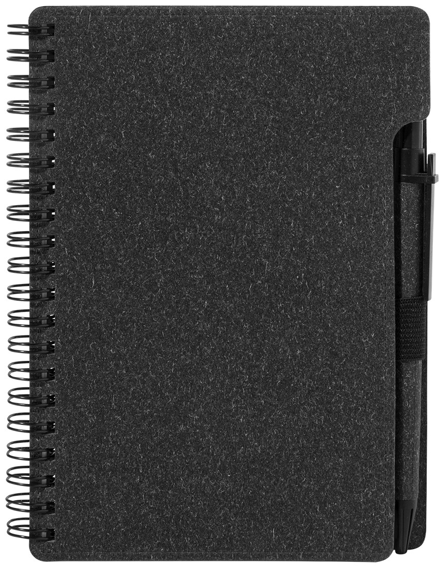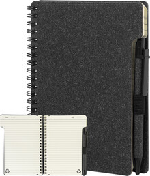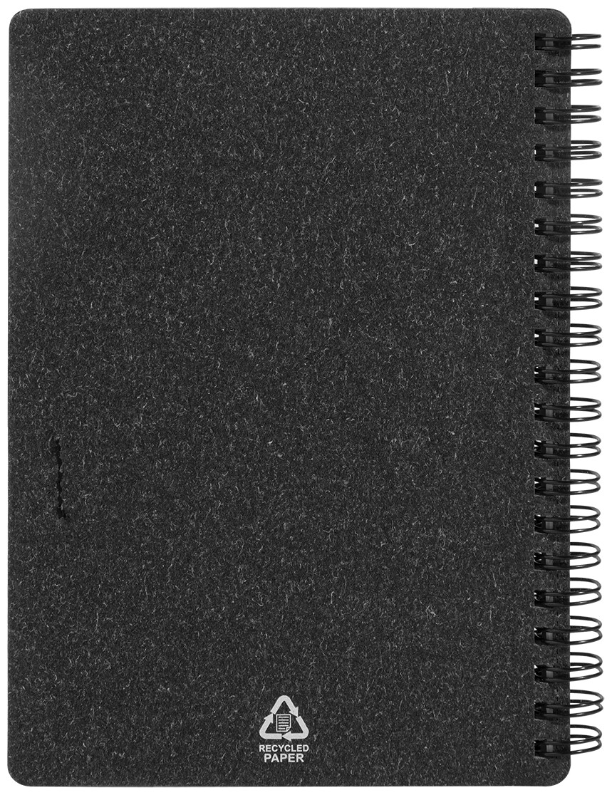 Spirálový blok A6 z recyklovaného papíru s 80 linkovanými listy. Včetně recyklovaného papíru a kuličkového pera z recyklovaného PP s modrou náplní.