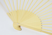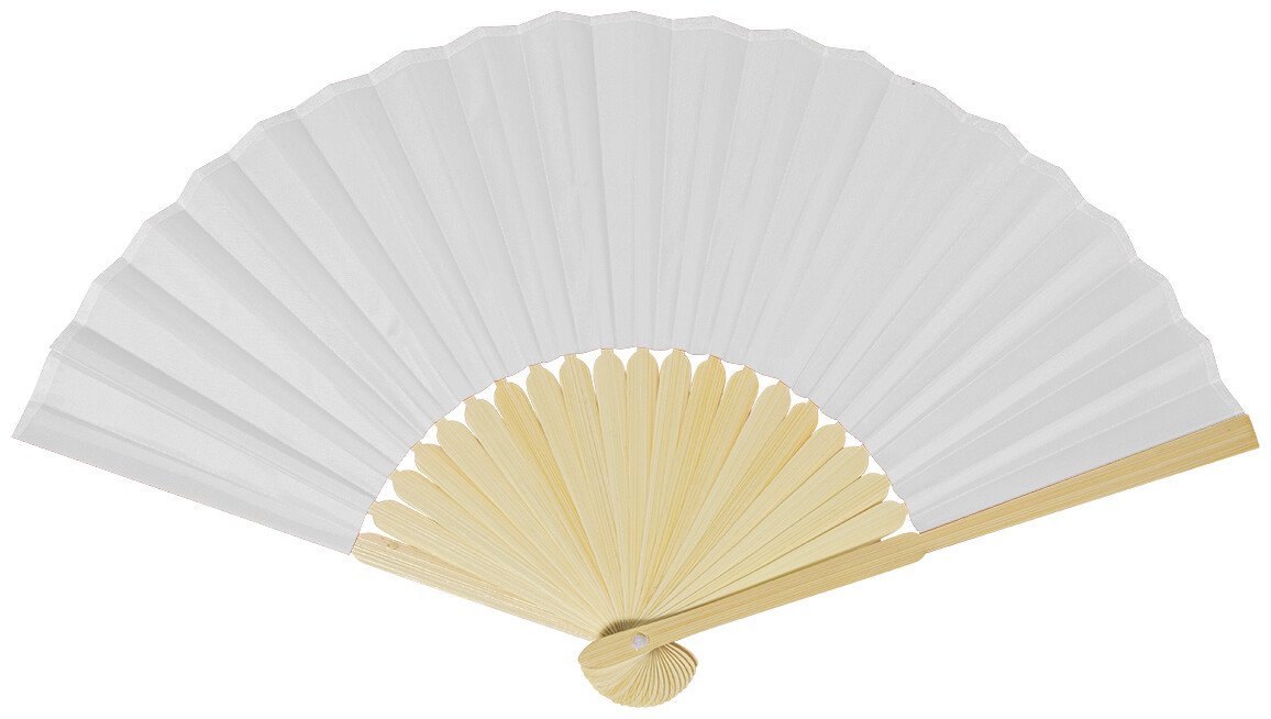 Vějíř z RPET polyesteru s bambusovými žebry.