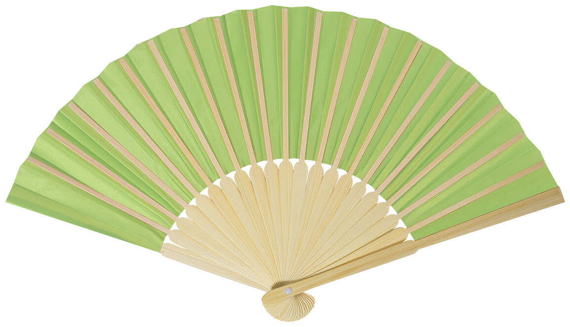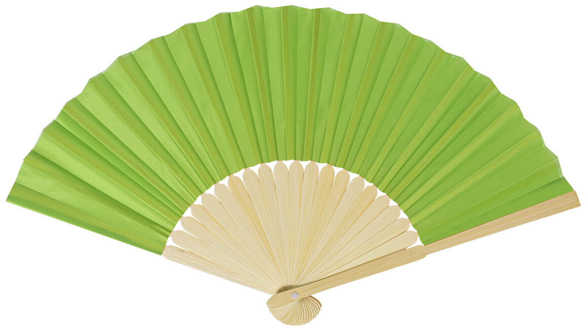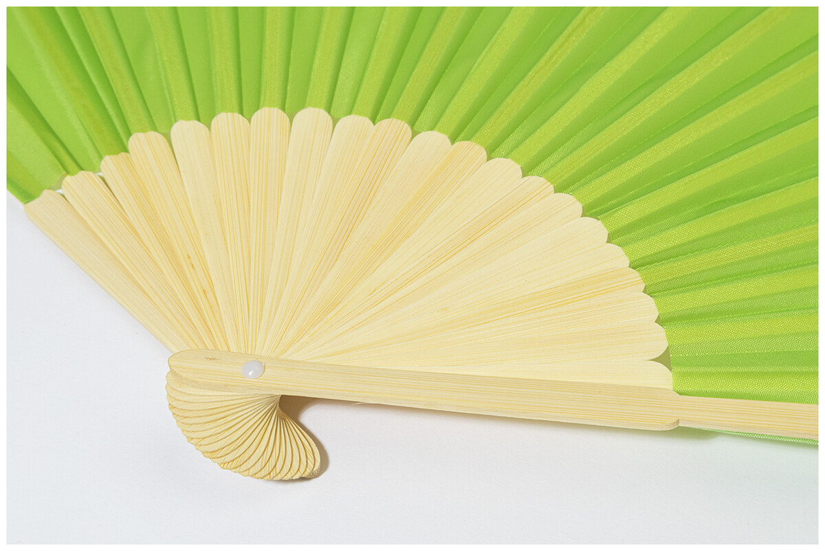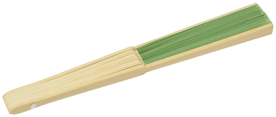 Vějíř z RPET polyesteru s bambusovými žebry.