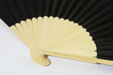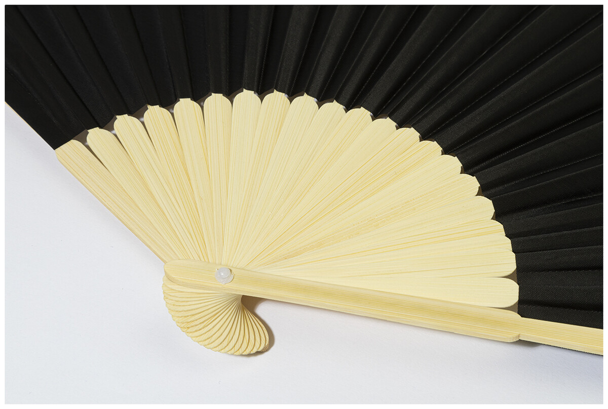 Vějíř z RPET polyesteru s bambusovými žebry.