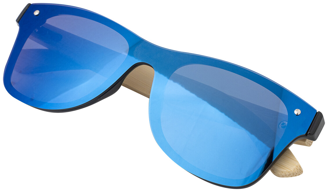 Sluneční brýle se zrcadlovými jednodílnými čočkami a bambusovými nožičkami. S ochranou UV 400.