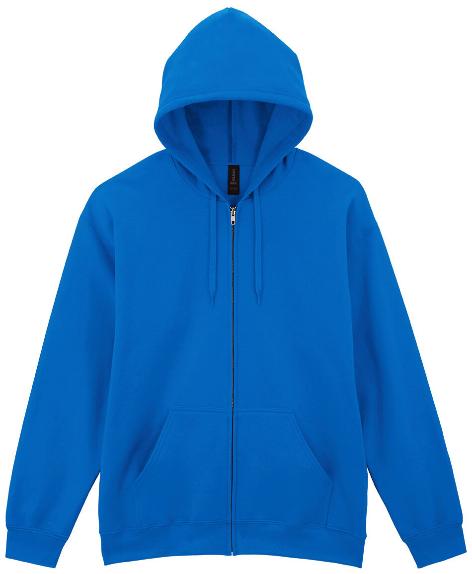 Mikina s kapucí na zip z 80% bavlny a 20% polyesteru s předními kapsami. 285 g/m2 (bílá 278 g/m2). Značka Gildan.