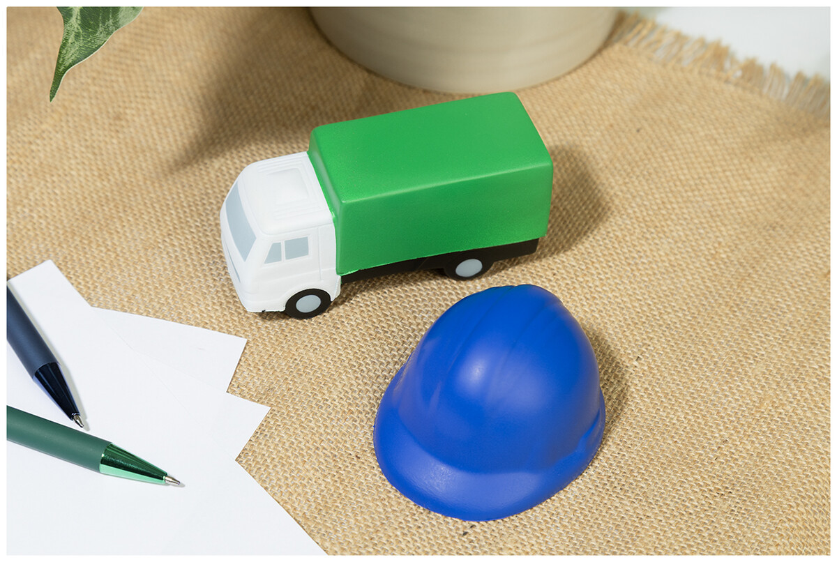 Antistresový míček ve tvaru ochranné přilby z PU pěny.