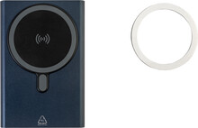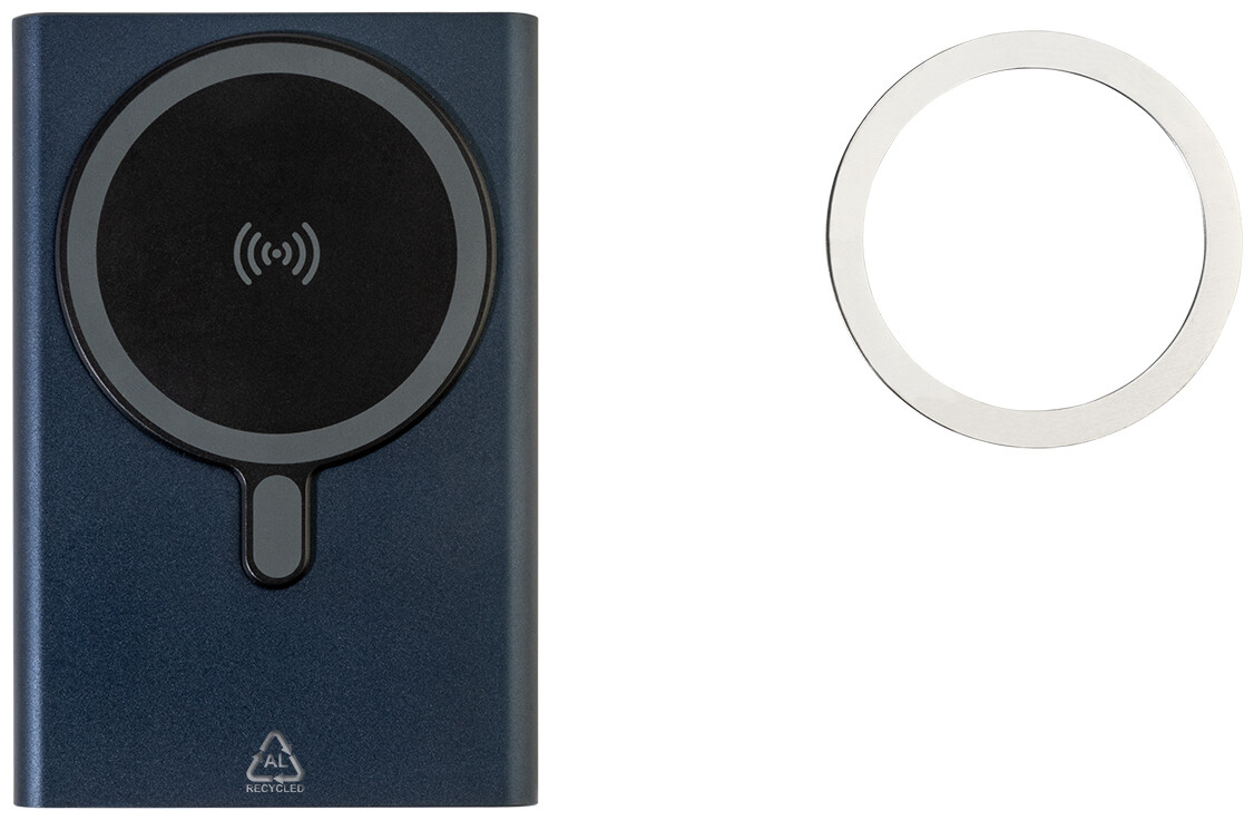 Power banka z recyklovaného hliníku s vestavěnou magnetickou bezdrátovou rychlonabíječkou (15 W) a 5000 mAh baterií. Se vstupem USB-C a portem pro nabíječku. Obsahuje samolepicí kovový kroužek pro použití magnetické funkce na jakémkoli bezdrátovém nabíjecím zařízení. Kompatibilní s iPhone® 12 nebo novějším. USB nabíjecí kabel součástí.