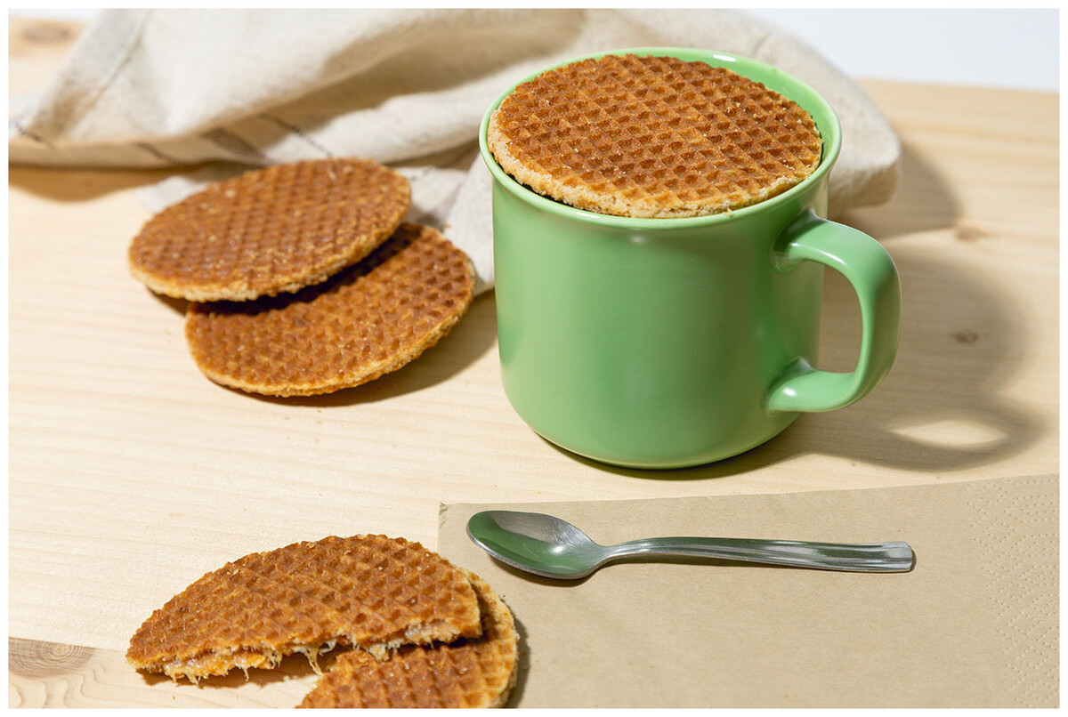 Pravé holandské stroopwafels (dva tenké plátky vafle plněné krémovým karamelovým sirupem) balené v plastovém sáčku. 8 kusů, 250 gramů. Lze přizpůsobit vinylovou samolepkou nebo plnobarevně potištěnou papírovou dárkovou krabičkou. Cena nezahrnuje tisk.