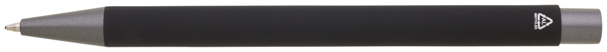 Kovová propiska CAGERI SOFT RE z recyklovaného hliníku s hnědo-černými doplňky, s oranžovým pogumovaným povrchem. Velkoobsahová modrá náplň.