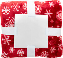 RPET flanelová fleecová vánoční deka, 260 g/m2. S potisknutelnou papírovou kartou a stuhou.