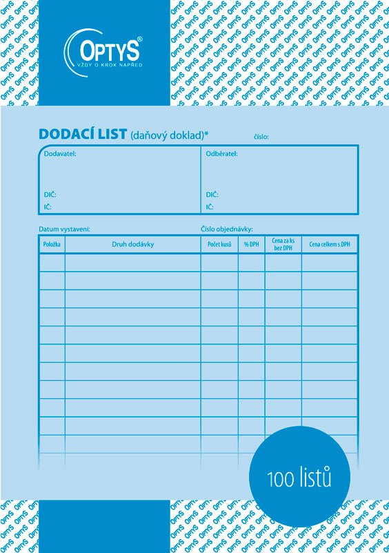 | 1709313 | DODACÍ LIST OPTYS A5/100l | 71,57 Kč | 86,60 Kč | 1 ks | |||