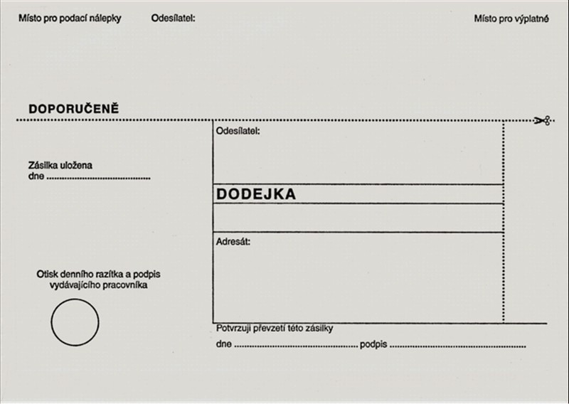 Poštovní obálky s dodejkou se mohou v pruběhu platnosti katalogu měnit dle legislativních změn.