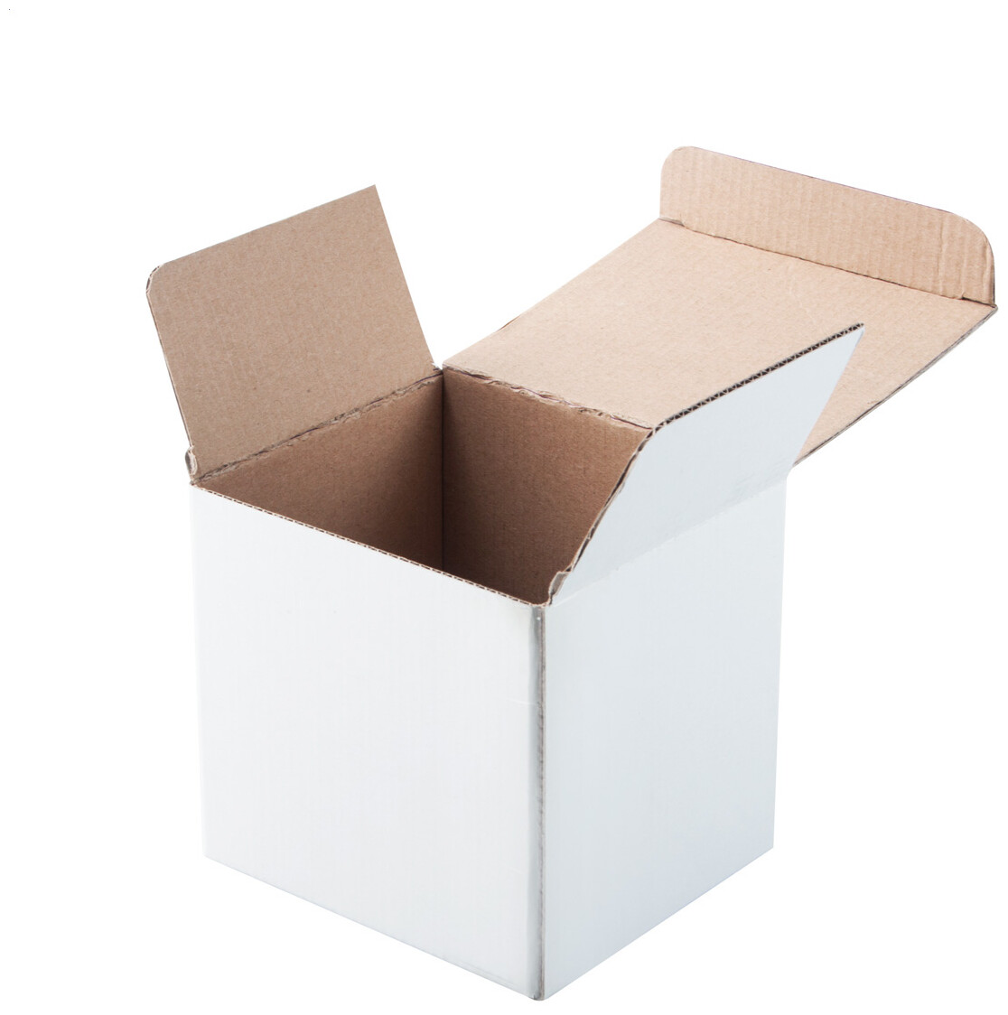 Bílá papírová krabička na hrnek o objemu 300 ml.