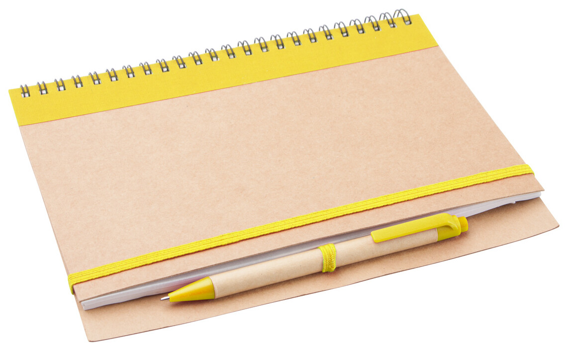 Nelinkovaný blok z recyklovaného papíru, se 60 listy a s papírovým kuličkovým perem.