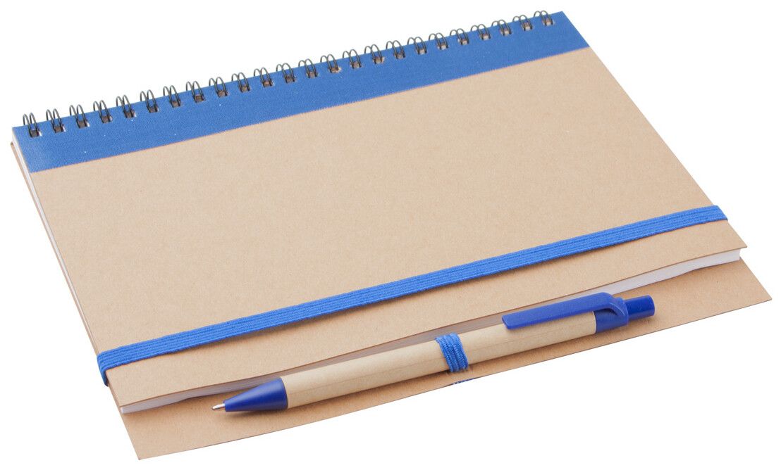 Nelinkovaný blok z recyklovaného papíru, se 60 listy a s papírovým kuličkovým perem.