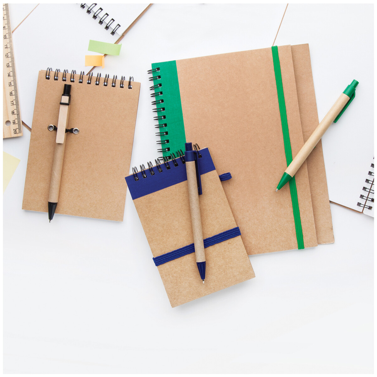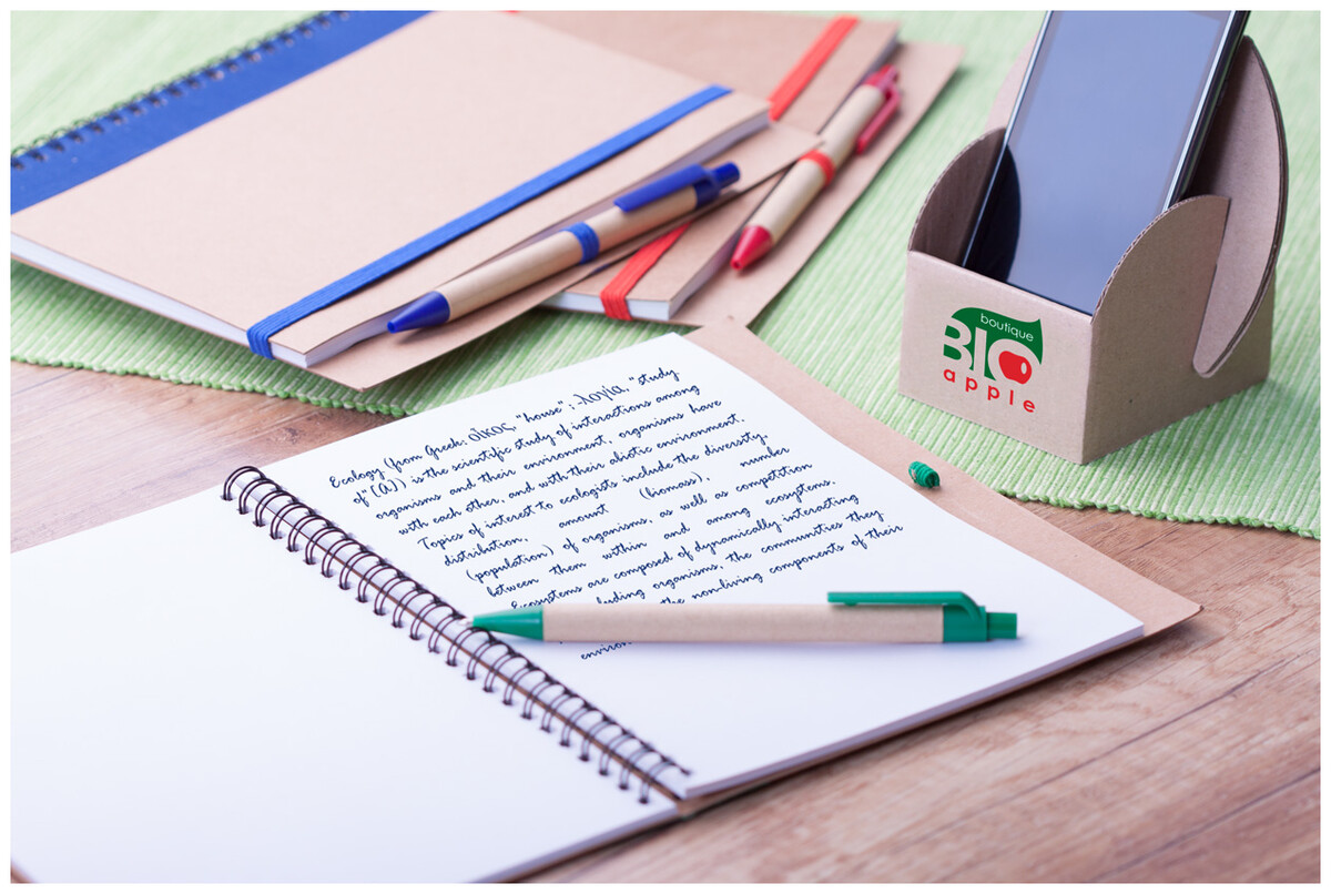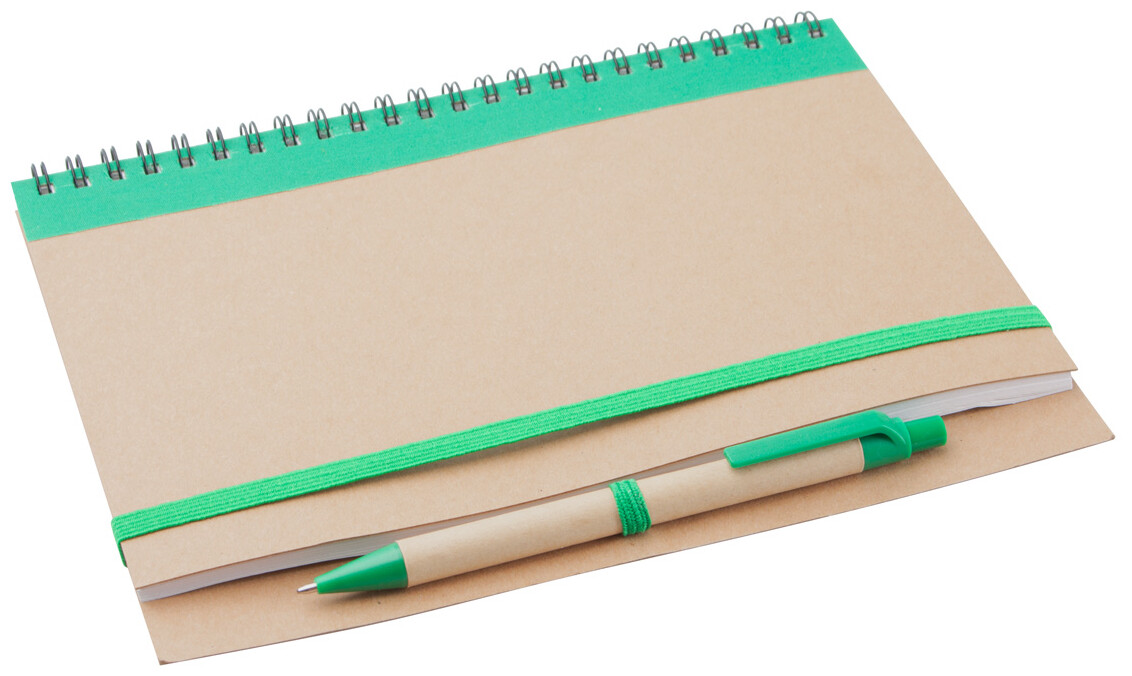 Nelinkovaný blok z recyklovaného papíru, se 60 listy a s papírovým kuličkovým perem.