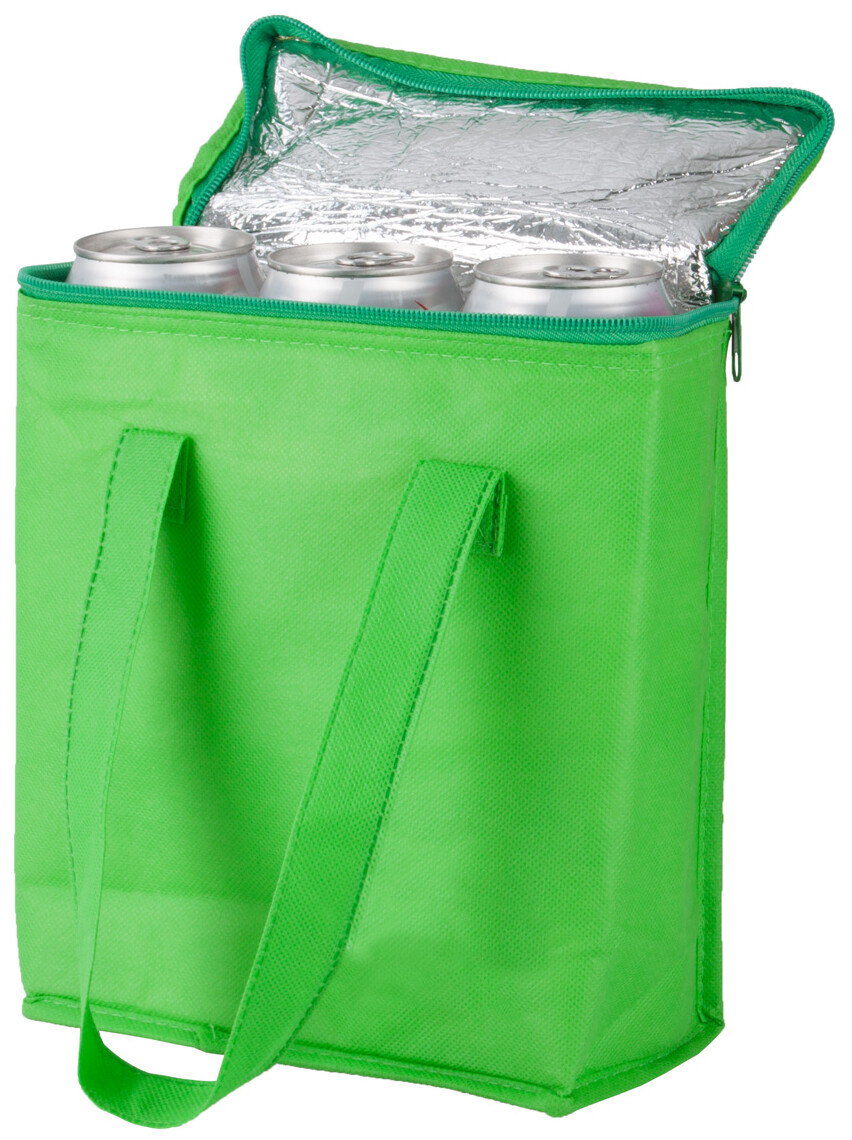 Chladící taška z netkané textilie na zip s hliníkovou vsadkou uvnitř. Pro 6ks plechovek 0,33 l nebo 3ks 0,5 l.