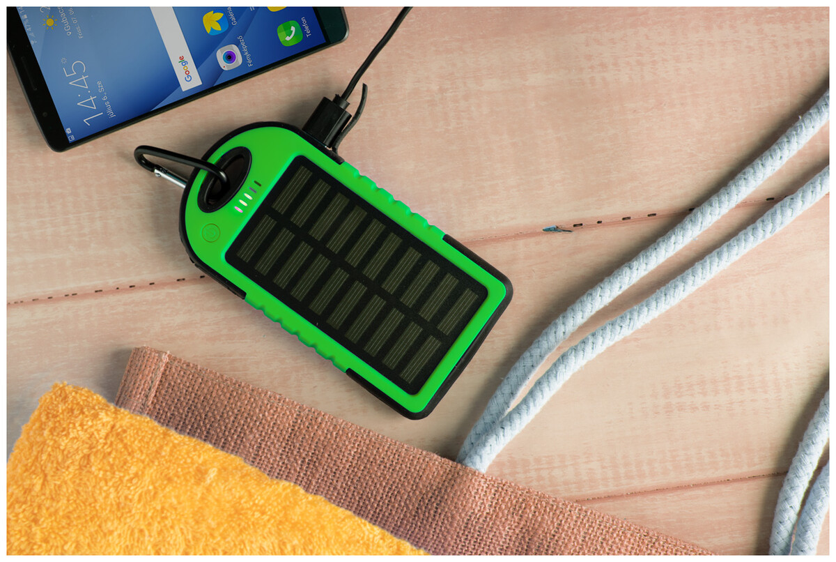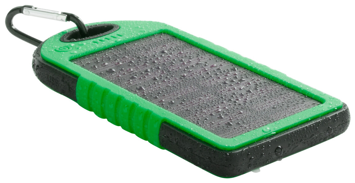 Plast/silikonová power banka s 4000 mAh baterií, solárním nabíjením a 1 LED diodou. Dodáváno vč. USB mikro kabelu.