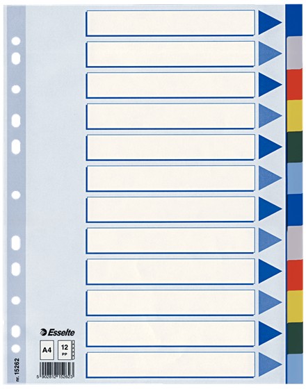 1726433 | Rozřaďovač Esselte A4, mix barev, 12 listů | 84,56 Kč | 102,32 Kč | 1 bal |