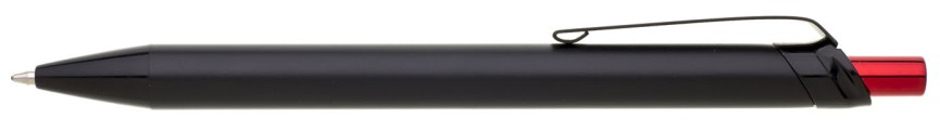 Kovová černá propiska s metalicky červeným cvakátkem. Netradiční na této propisce je laser, který je červeně lesklý. Vyniká zde zejména inverzní zpracování loga. Náplň velkoobsahová, modře píšící.