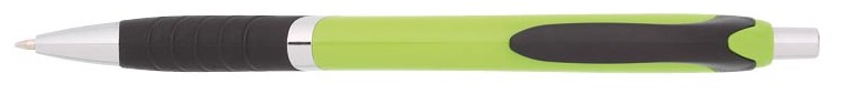 Plastové propisovací pero PEINA světle zelené.Pero má černý pogumovaný úchop s vroubky, zakončený stříbrným šikmým poružkem.Klip je včerné barvě. Náplň je X20 , píše modře.