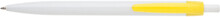 Plastové, kuličkové pero LIDO má bílé tělo a žlutý klip. Má náplň X-20 (106mm), modře píšící.