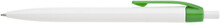 Plastové, kuličkové pero LIDO má bílé tělo a zelený klip. Má náplň X-20 (106mm), modře píšící.