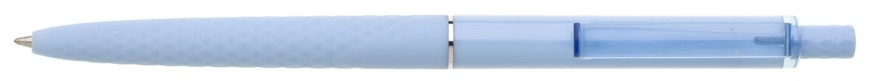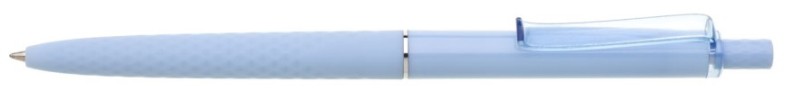 Tenká světle modrá propiska má 3D soft povrch ve spodní části, horní část propisky je hladká, vhodná pro umístění loga, Obě části odděluje tenký stříbrný kroužek. Klip je průhledný v barvě propisky. Kolekce DESIGN. Náplň X20 modře píšící.