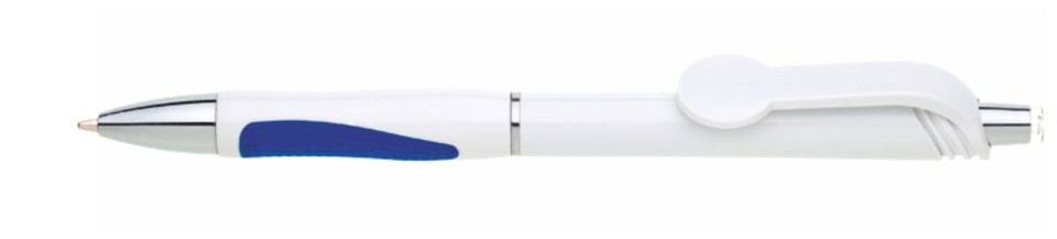 Varianta oblíbené propisky s rozšířeným klipem ve tvaru kola vhodným pro plnobarevný UV potisk. Gumový grip je v modré barvě. Značka GABRIELIS.Náplň X20, hrot 1 mm, modře píšící.