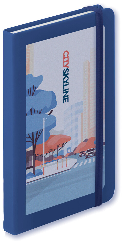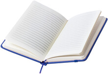 Blok s deskami z PU kůže, se 100 linkovanými listy, záložkou a gumičkou. Velikost A6.