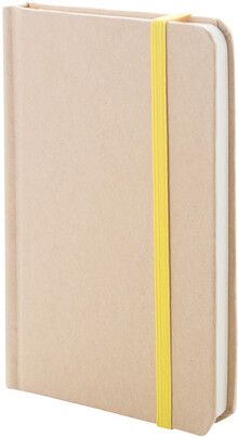Blok s deskami potaženými recyklovaným kartonem se 100 čistými listy, barevnou záložkou a gumičkou.