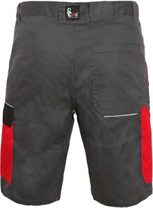 Pánské montérkové kraťasy, pas s poutky na opasek, přední klínové kapsy, boční kapsa s klopou, kapsa na skládací/svinovací metr, zadní jednoduchá kapsa na pravé straně.