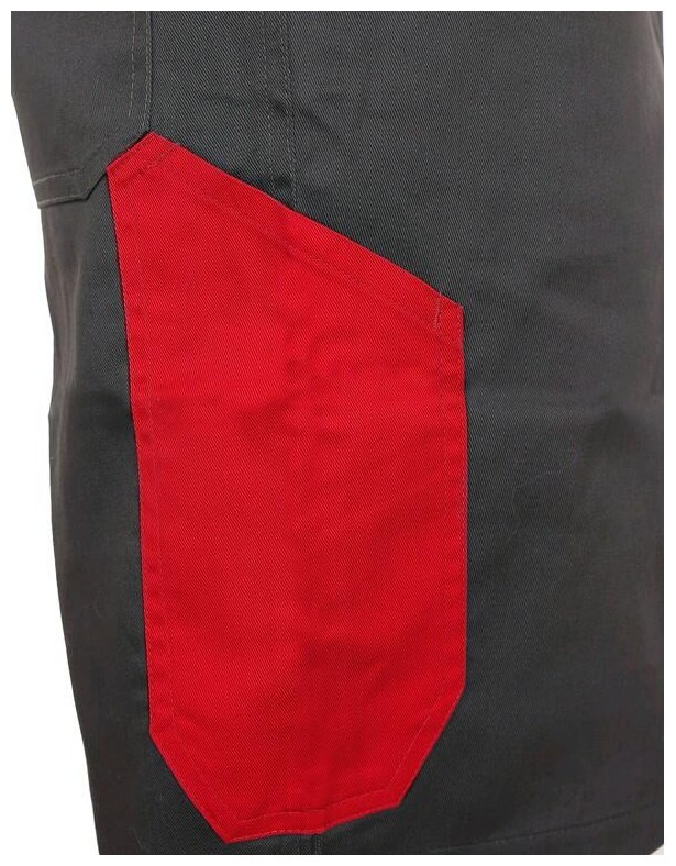 Pánské montérkové kraťasy, pas s poutky na opasek, přední klínové kapsy, boční kapsa s klopou, kapsa na skládací/ svinovací metr, zadní jednoduchá kapsa na pravé straně.