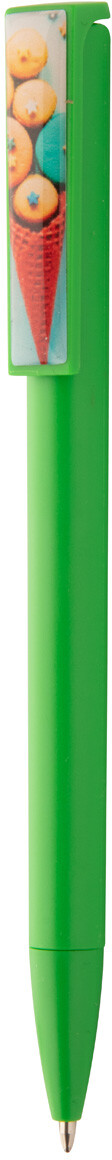 Plastové kuličkové pero se speciálně pohyblivým klipem a s modrou náplní.