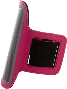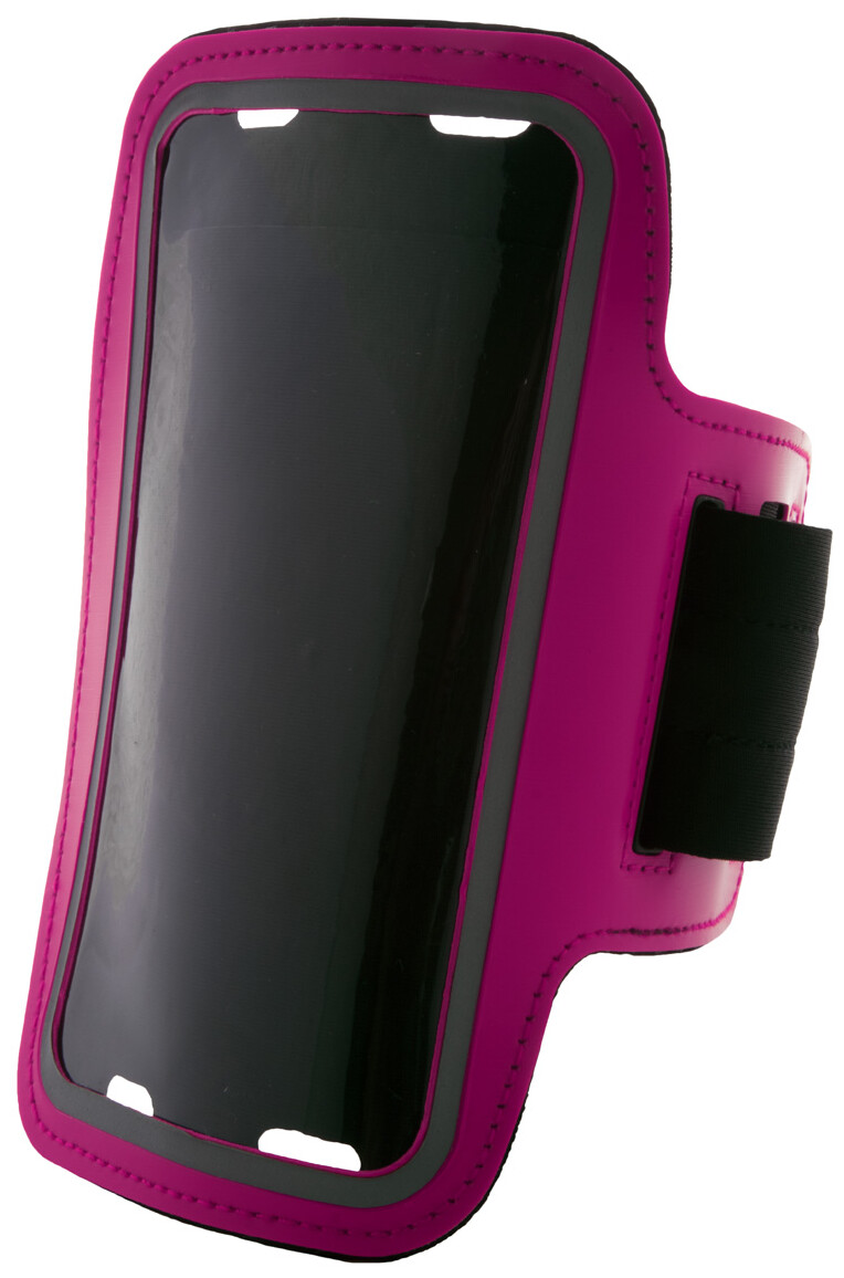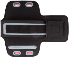 Obal na mobil na paži z PU kůže s dotykovým okénkem a reflexními částmi. Vhodný pro mobily do rozměru 6 palců.