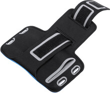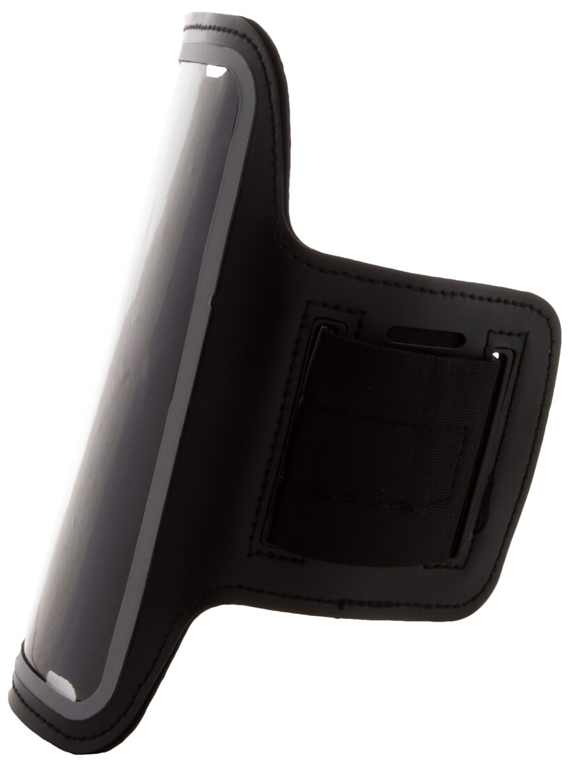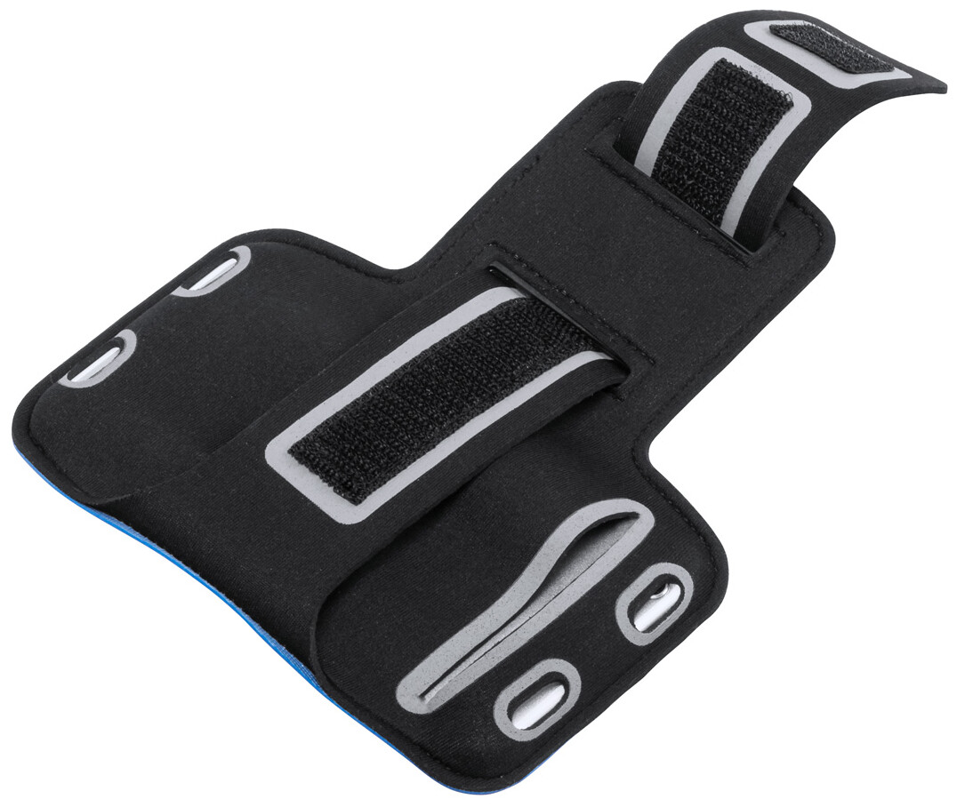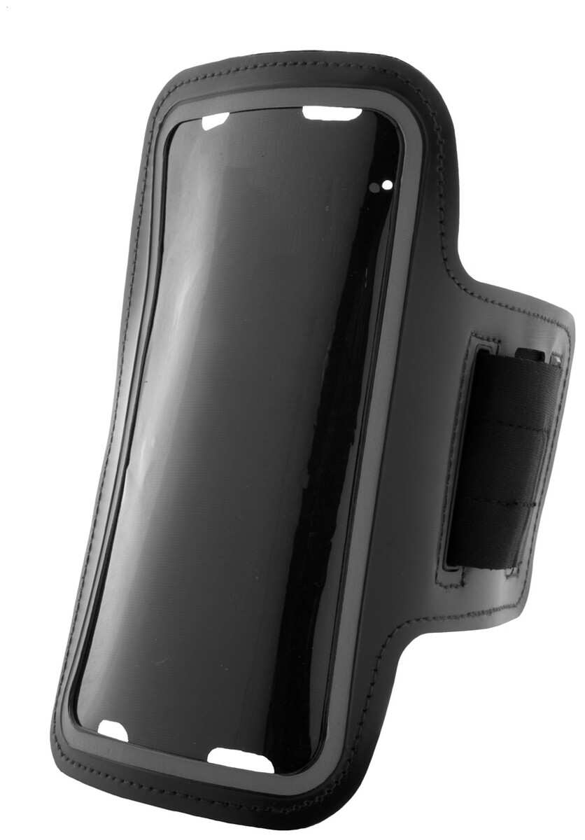 Obal na mobil na paži z PU kůže s dotykovým okénkem a reflexními částmi. Vhodný pro mobily do rozměru 6 palců.