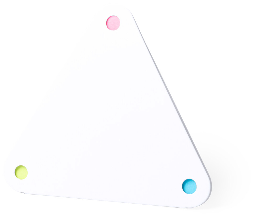 Trojúhelníkový bloček s deskami z recyklované lepenky se samolepícími lístky ve 2 velikostech.Vč. 20 ks trojhranných a 60 ks trojúhelníkových lístků.