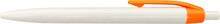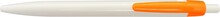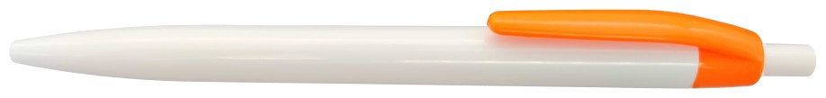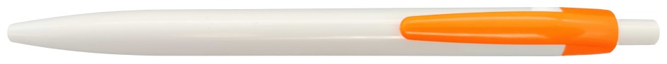 Plastové, kuličkové pero LIDO má bílé tělo a jasný oranžový klip. Má náplň X-20 (106mm), modře píšící.