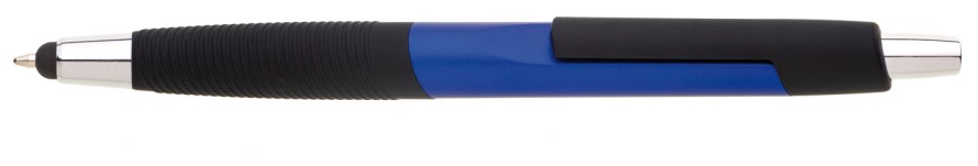 Plastové, kuličkové pero modré s černým, gumovým a vroubkovaným gripem. Na spodní části tužky je umístěn touch pro dotykové displeje. Náplň X 20, modře píšící.